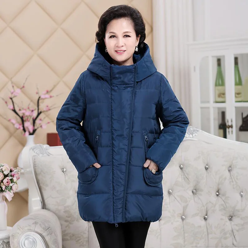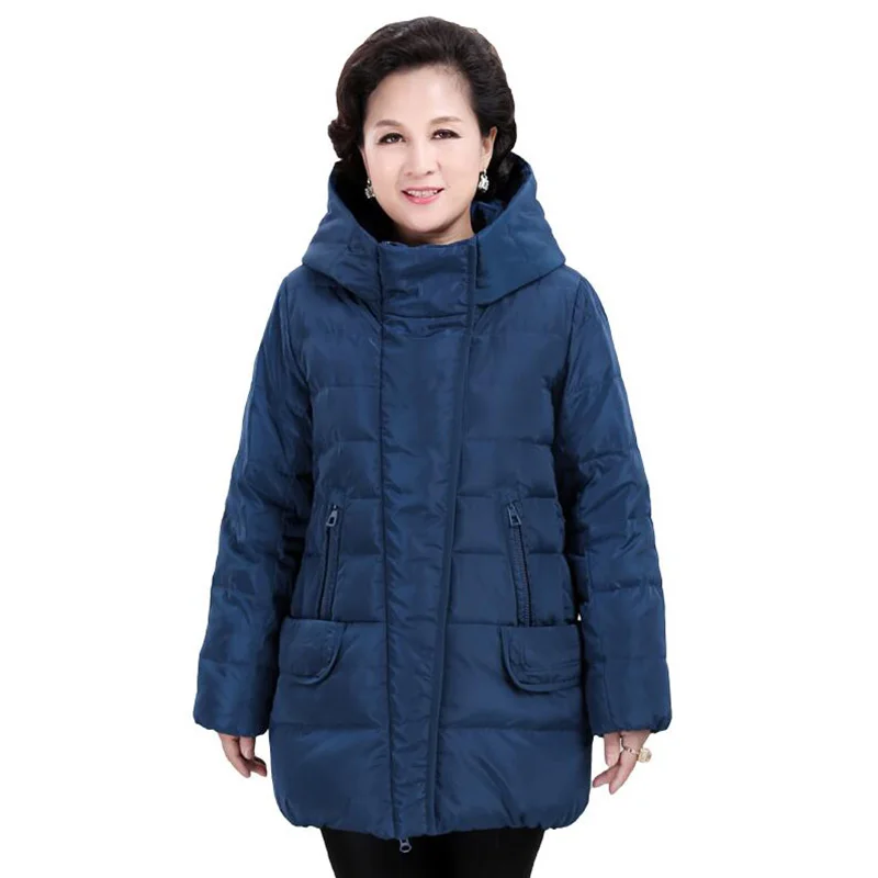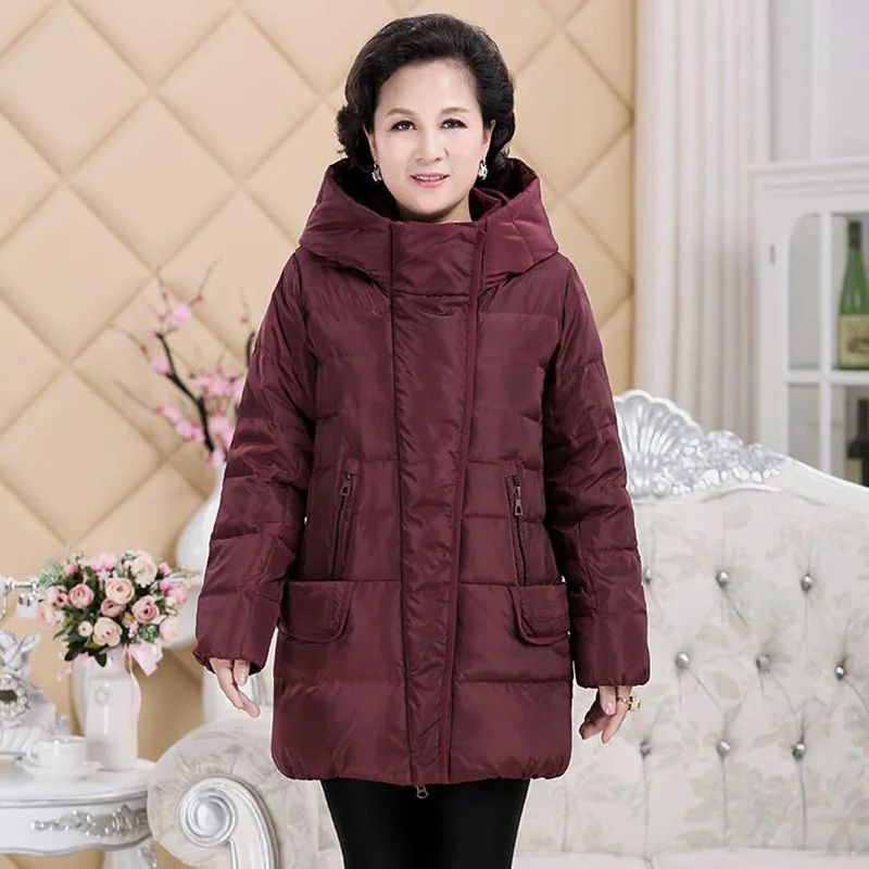 Best 2018 Plus size Women Middle-aged Down jacket Thicken Big size Hooded mother clothes Warm White duck