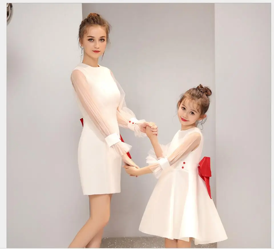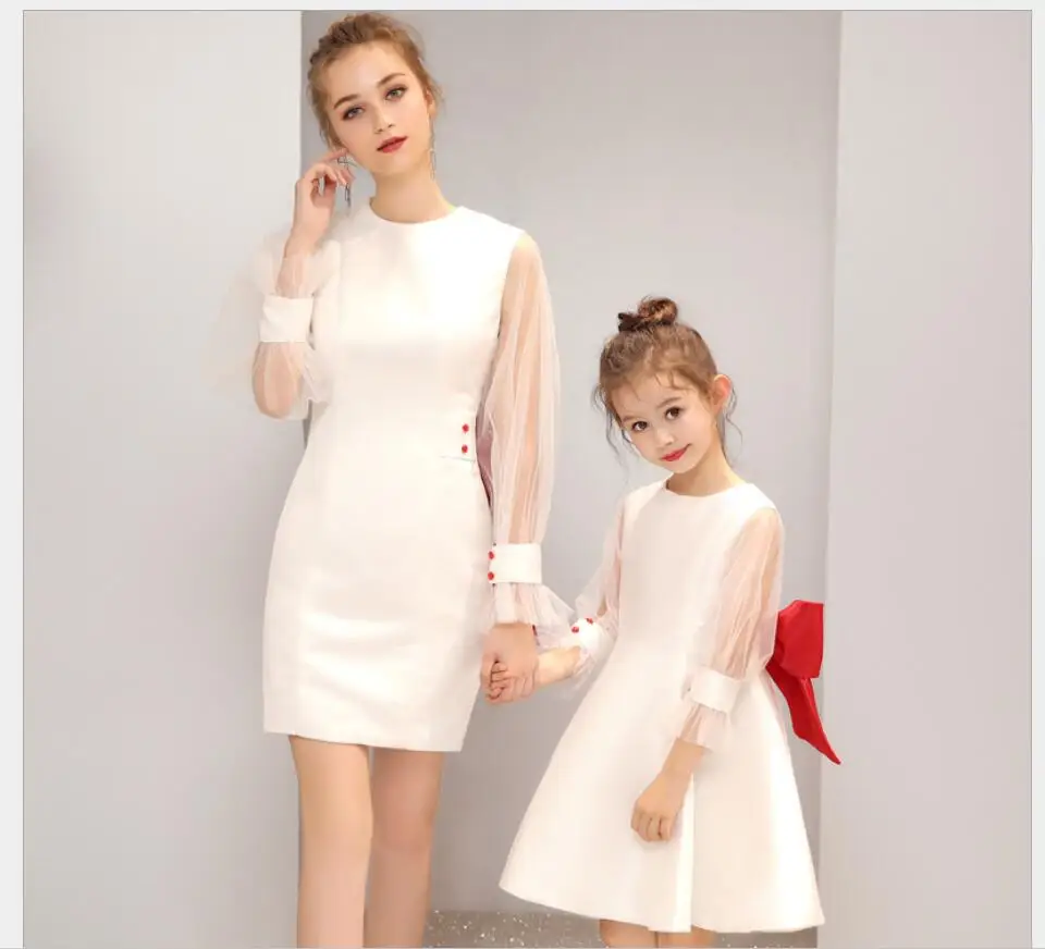 Best 2019 White Fringe Lace Girl Dress Women Dress Long Wedding Party Mother Daughter dresses Family Mat