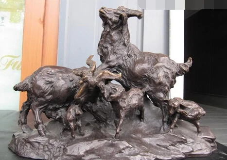 Free Shipping JP S1100 Chinese Folk Pure Copper Bronze lovely Five Mother and child Goat sheep Statue Discount 35