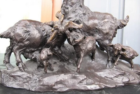 Best JP S1100 Chinese Folk Pure Copper Bronze lovely Five Mother and child Goat sheep Statue Discount 35