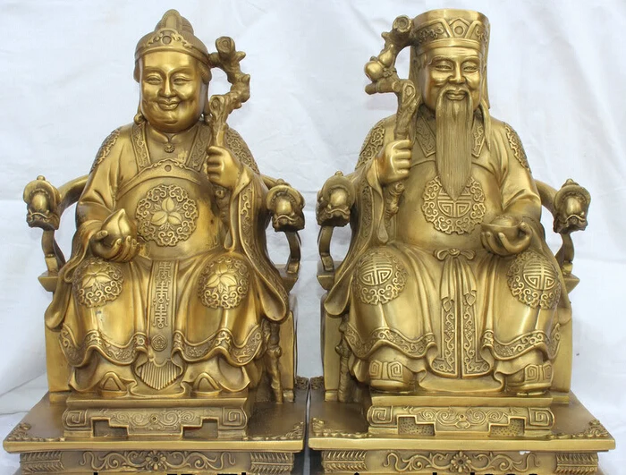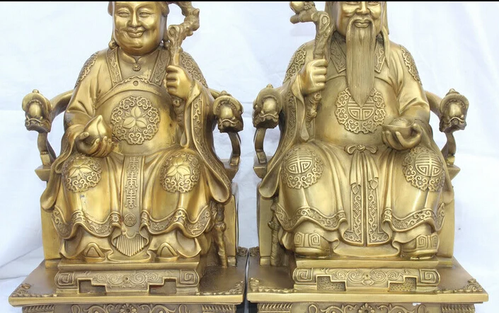 Best JP S62 14" Chinese Fengshui Pure Brass Seat Tu JI Cong Earth Of God & Mother Statue