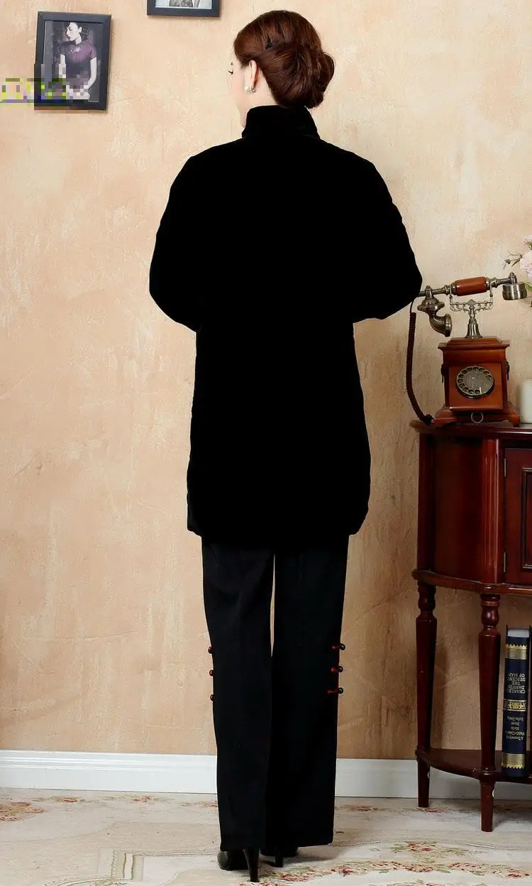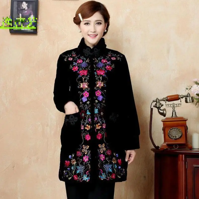 Limited Embroidery Flower Mother Clothes Lady Thick Mandarin Collar Jacket Winter New Warm Velvet Long Slee