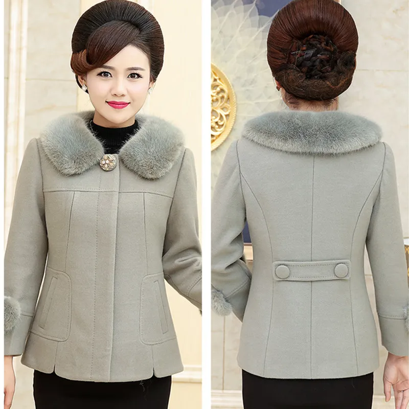 Special Middle-aged women woolen sweater Autumn Winter Mother dress short fur collar wool jacket female Car