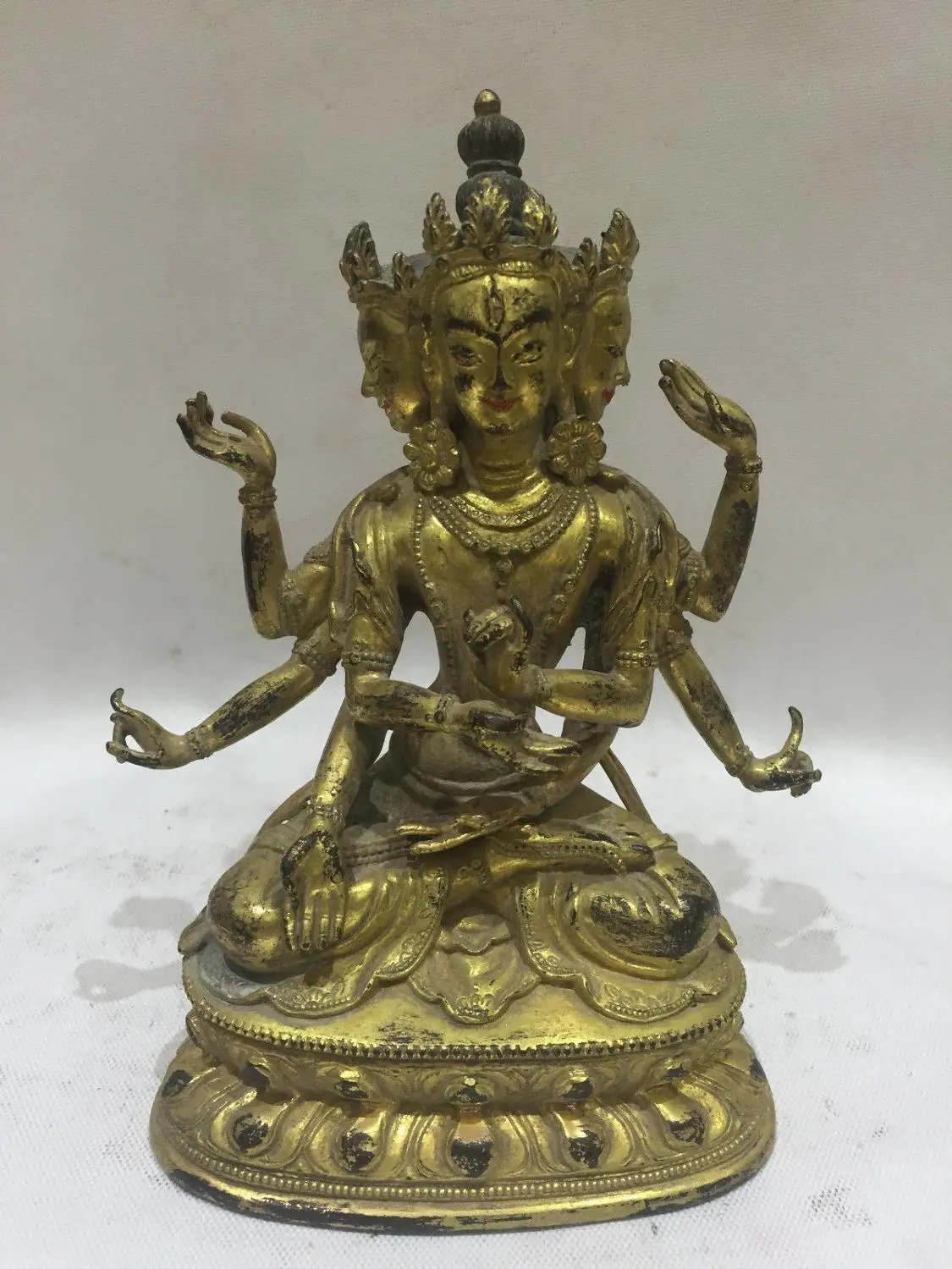 Home » best price , best seller , mother product » Buy SD China Antique Tibet Gilt Namgyalma Buddha Mother 3 heads 8 arms Bronze Statue