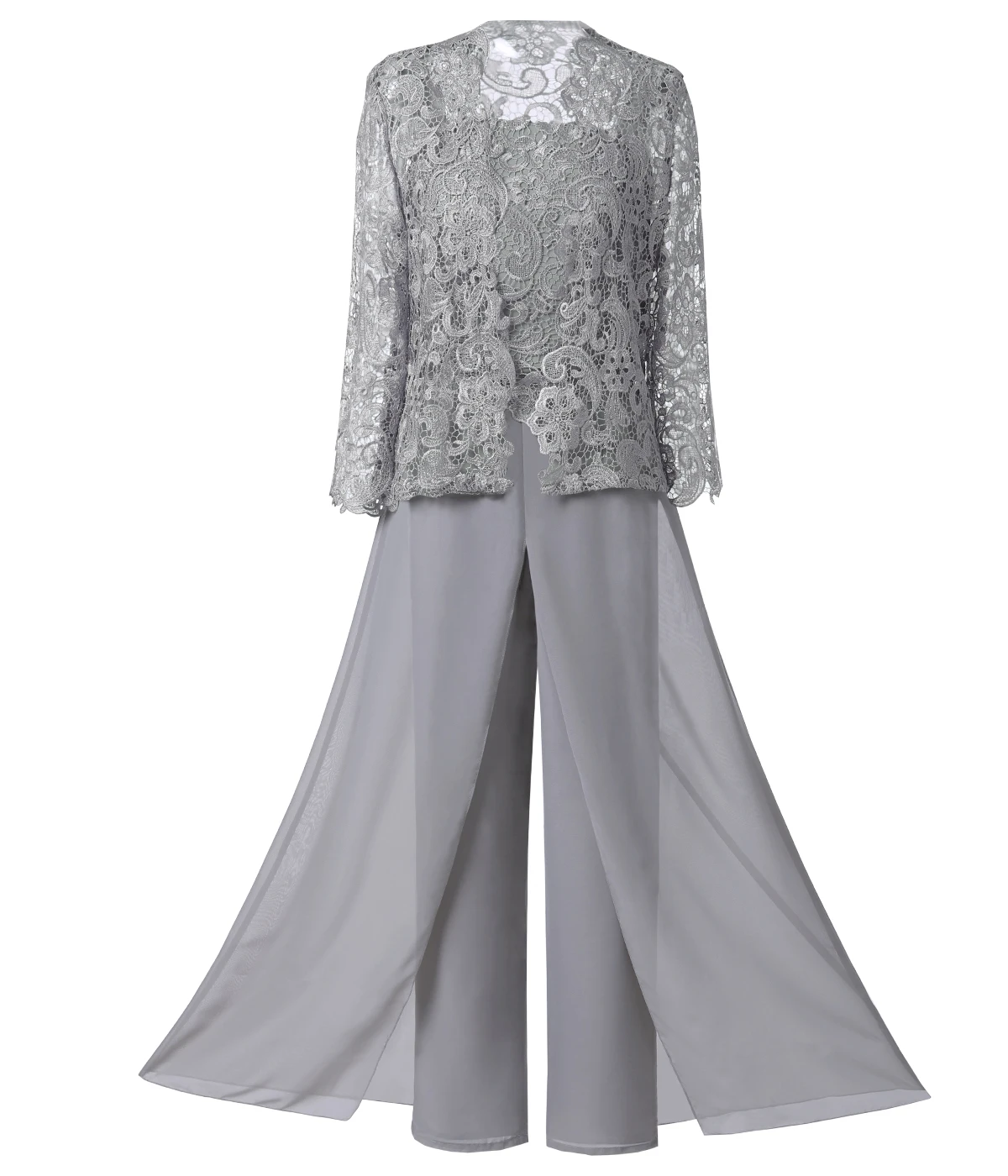 New women 3 pieces Elegant lace mother of the bride dress pants suit with short jacket outfit 3/4 sleev