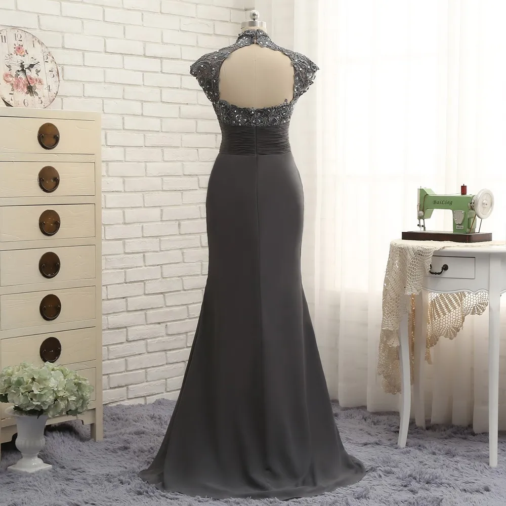 Cheap Plus Size Gray 2019 Mother Of The Bride Dresses Mermaid Cap Sleeves Lace Beaded Wedding Party Dress