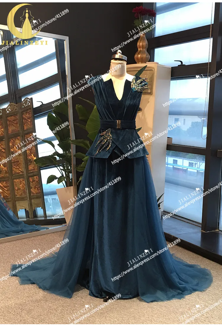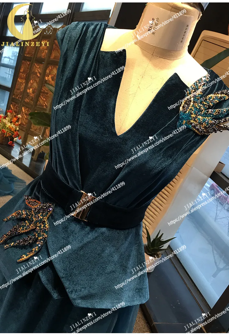 Discount JIALINZEYI 100% Real Picture Velvet With Beads V Neck Floor Length Mother of the bride Dresses