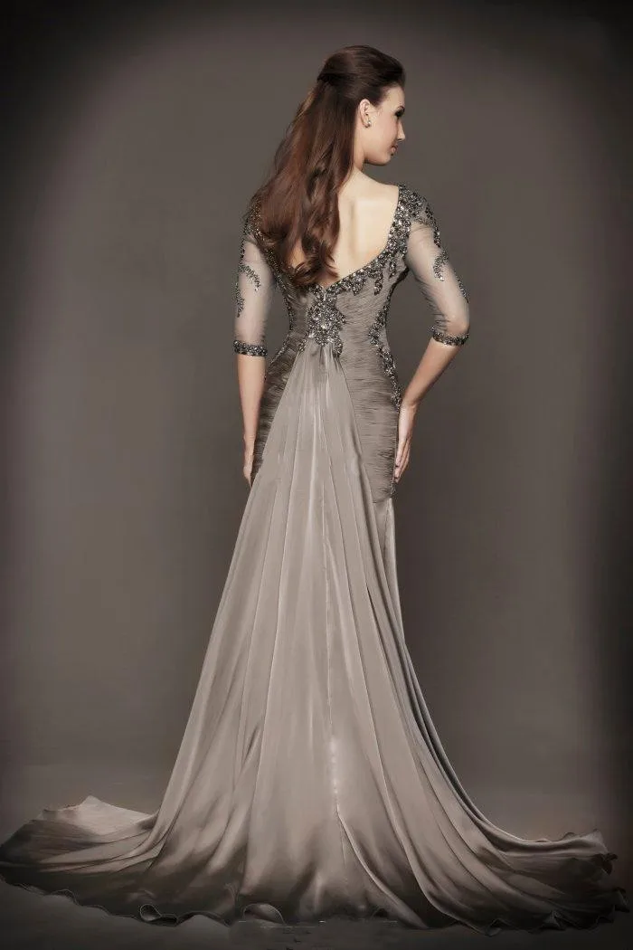 Special Product Plus Size 2019 Mother Of The Bride Dresses Mermaid 3/4 Sleeves Satin Beaded Crystals Groom Long Mot