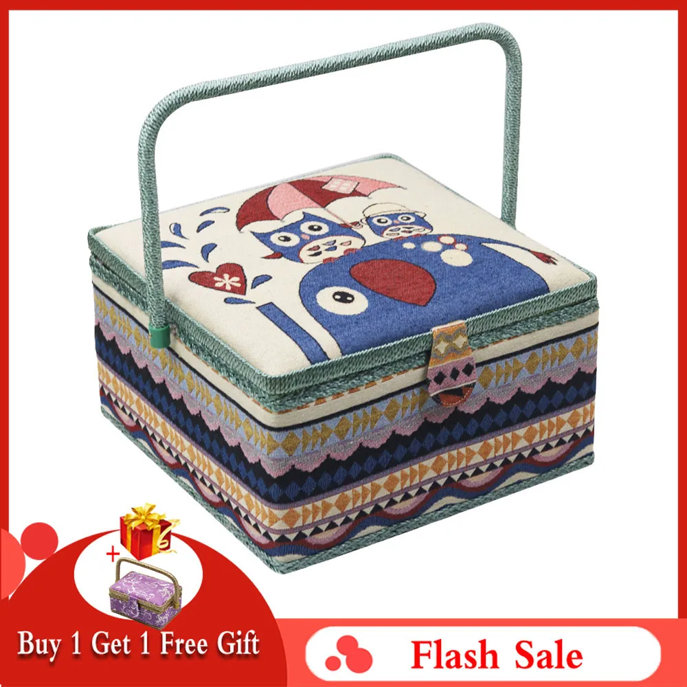 Hot Product Home Large Sewing Basket with Assorted Sewing Accessories Fabric Covered Crafts Sewing Kit Storage