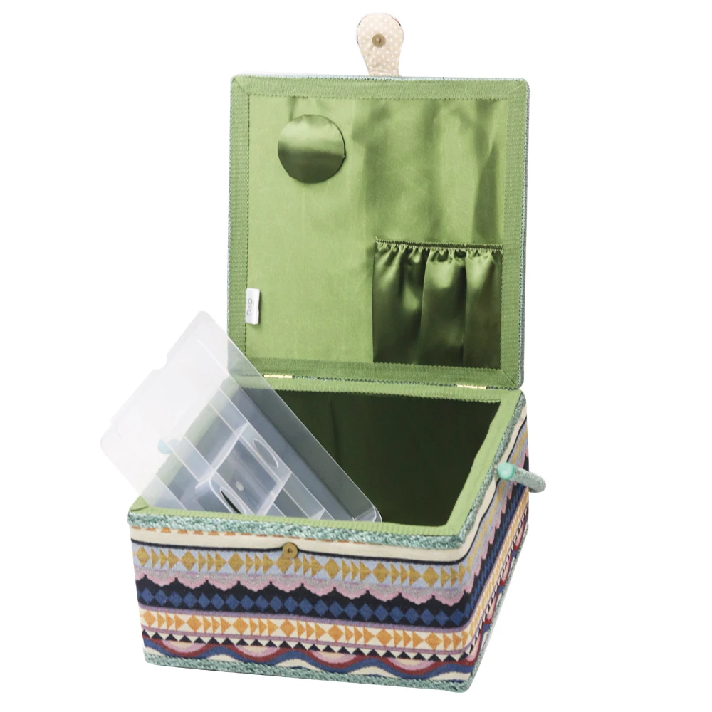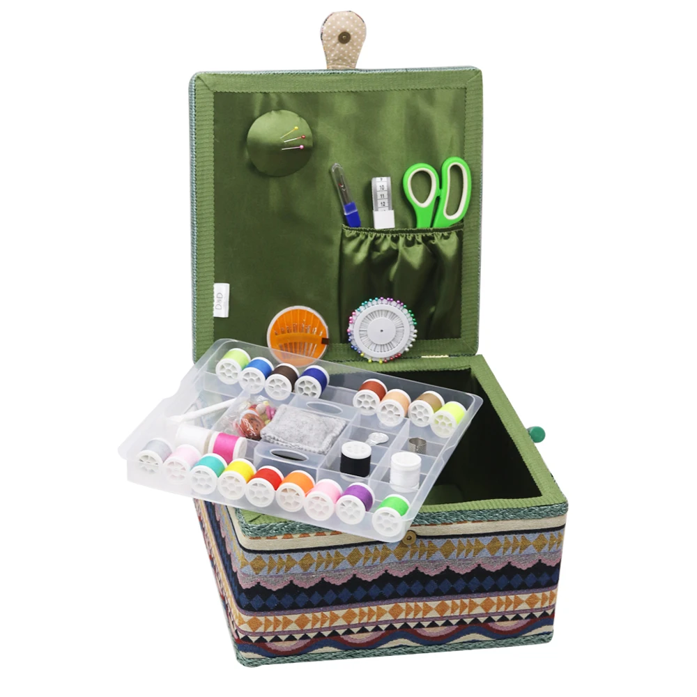 Get Home Large Sewing Basket with Assorted Sewing Accessories Fabric Covered Crafts Sewing Kit Storage