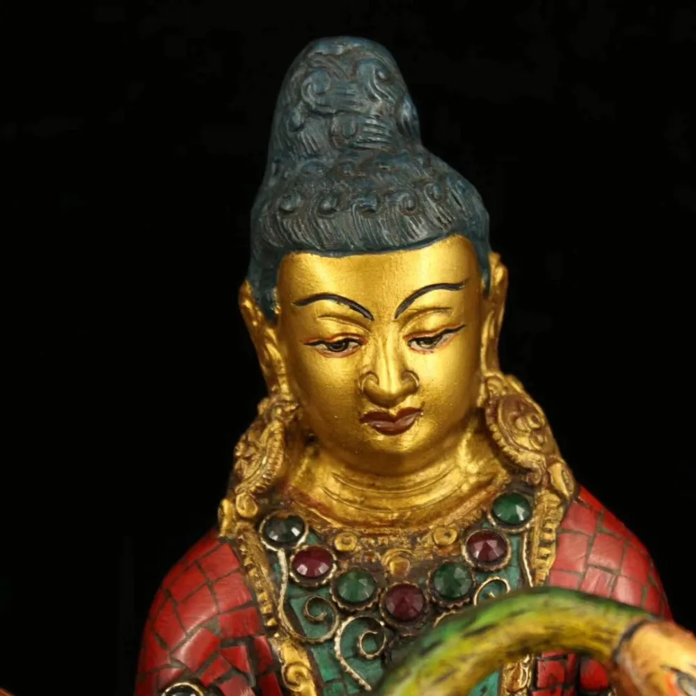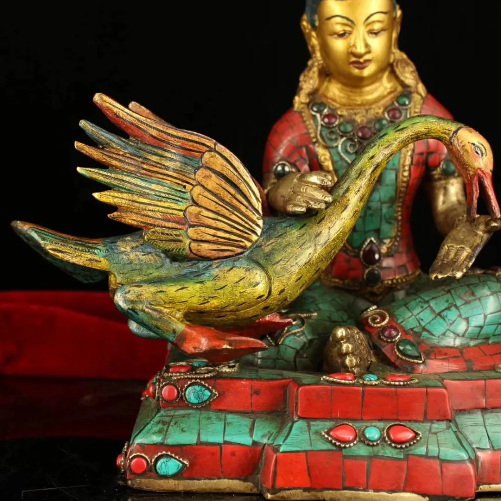 Get wedding decoration Tibetan temple old copper inlaid gemstone painted gold esoteric auspicious mothe