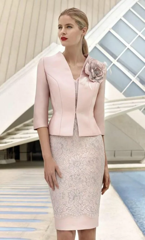 Hot Product 2019 Mother Of The Bride Dresses Sheath With Jacket Lace Flowers Groom Short Wedding Party Dress Mo