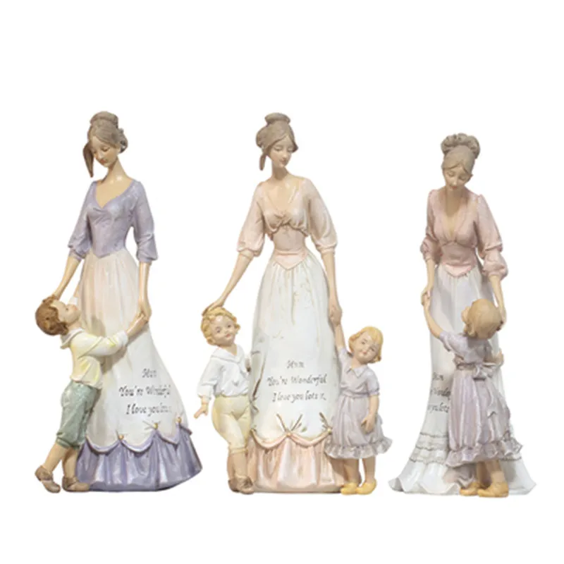 Hot Product European Style Resin Decoration Mother And Child Hold Hands Statue Retro Craftwork Creative Living