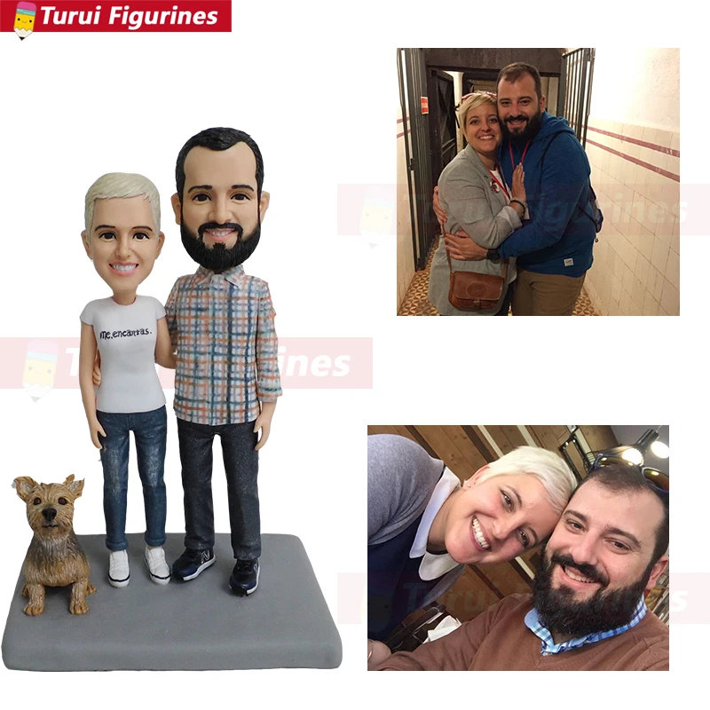 Buy father and mother love couple figurine with dog custom animal figurines custom bobbleheads fast che