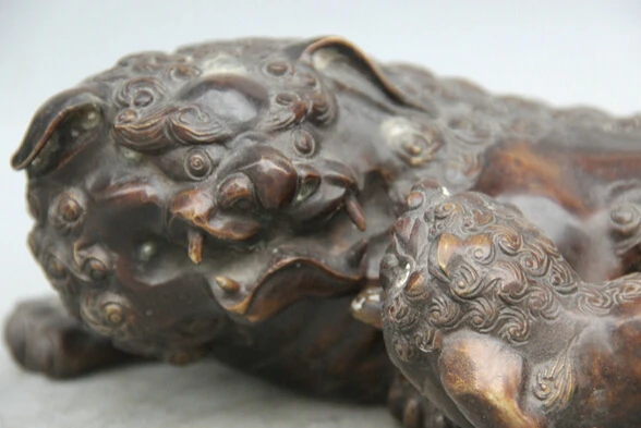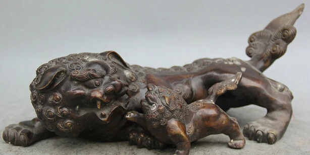 Home » best price , best seller , mother product » New JP S0524 14" Chinese Bronze Folk Feng Shui animal mother and son lion Statue sculpture Discount 35%