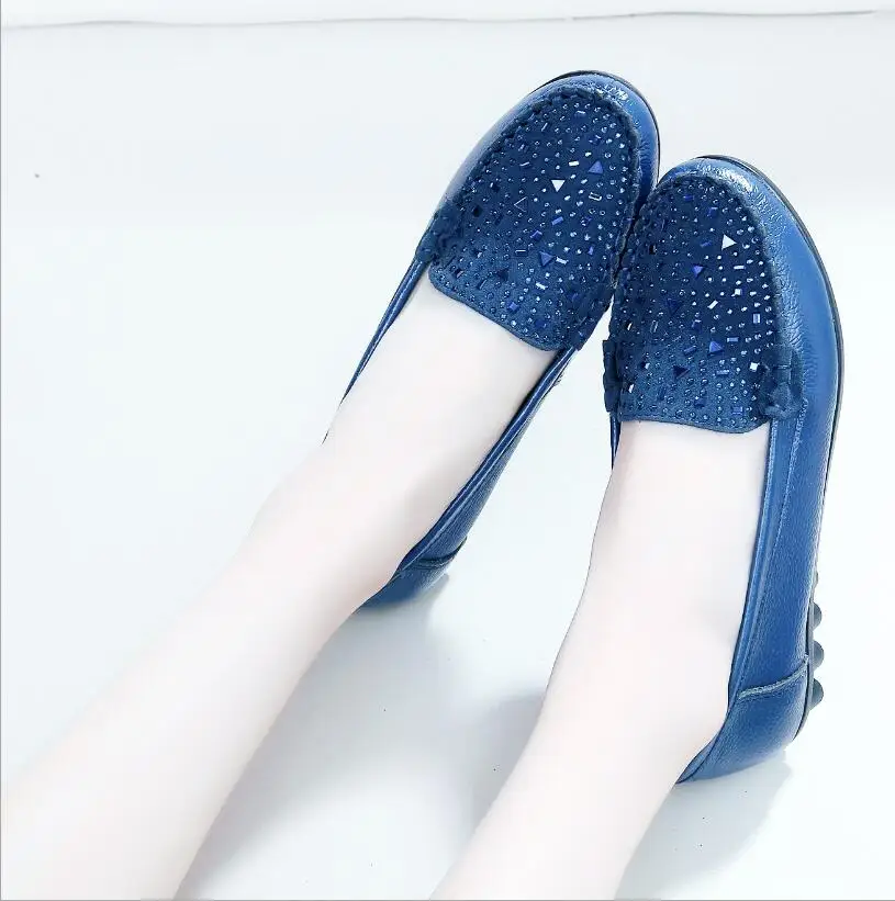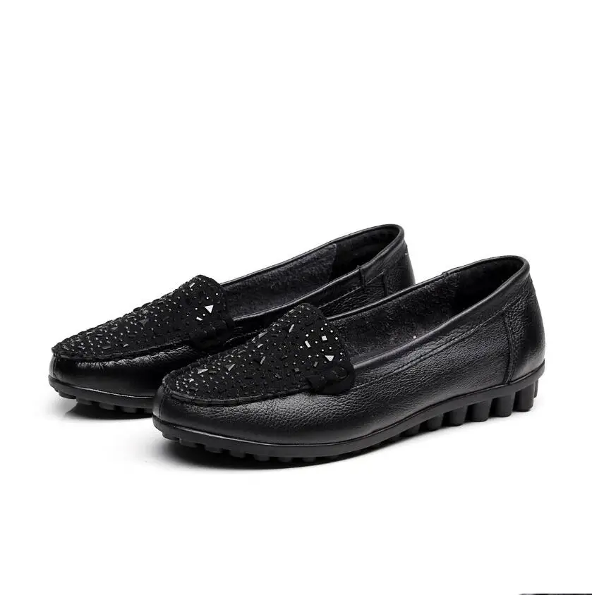 Hot Product CHAISHOU woman shoes autumn new peas shoes genuine leather mother shoes casual flat bottom rhinesto