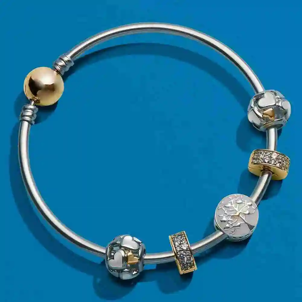 Special 100% 925 silver sterling tree of hearts charming mother-of-pearl hearts ~14 k gold bracelet present