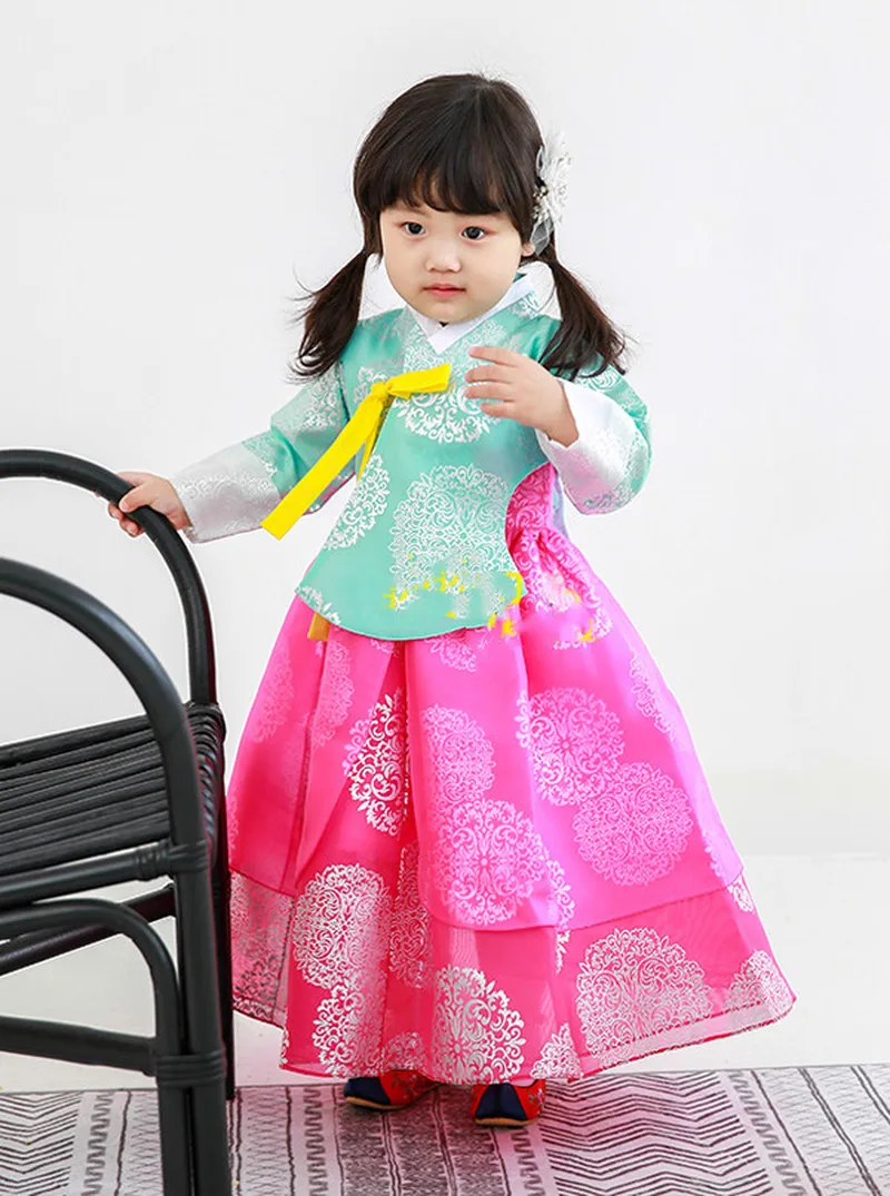 Limited Children Korean Girl Hanbok Dress Costume Ethnic Dance Traditional Long Sleeve Cosplay Tailored Fam