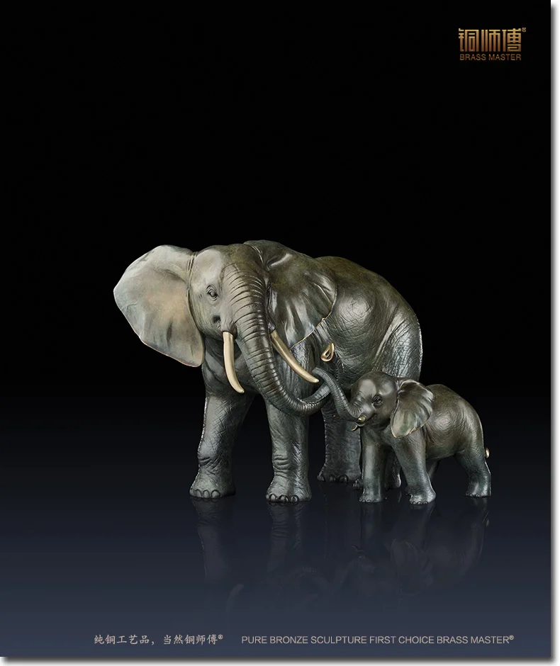 Special Product Copper decoration Fine Brass Bronze Mother and Kid Elephant Statue Home Chinese Brass Elephants Orn