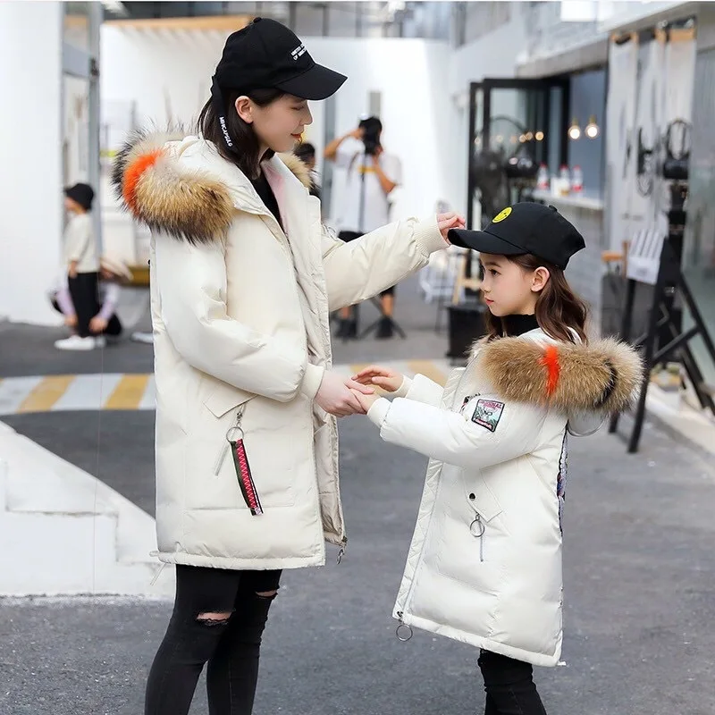 New Mother and Daughter Clothes Winter Jacket for Girls Family Matching Outfits Down Coats Duck Fur Ins